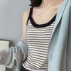 Sommer Damen Bedecken Seite Brüste Hundert mit Außen Tragen Innen Baumwolle Gestreiften Camisole Tank Top