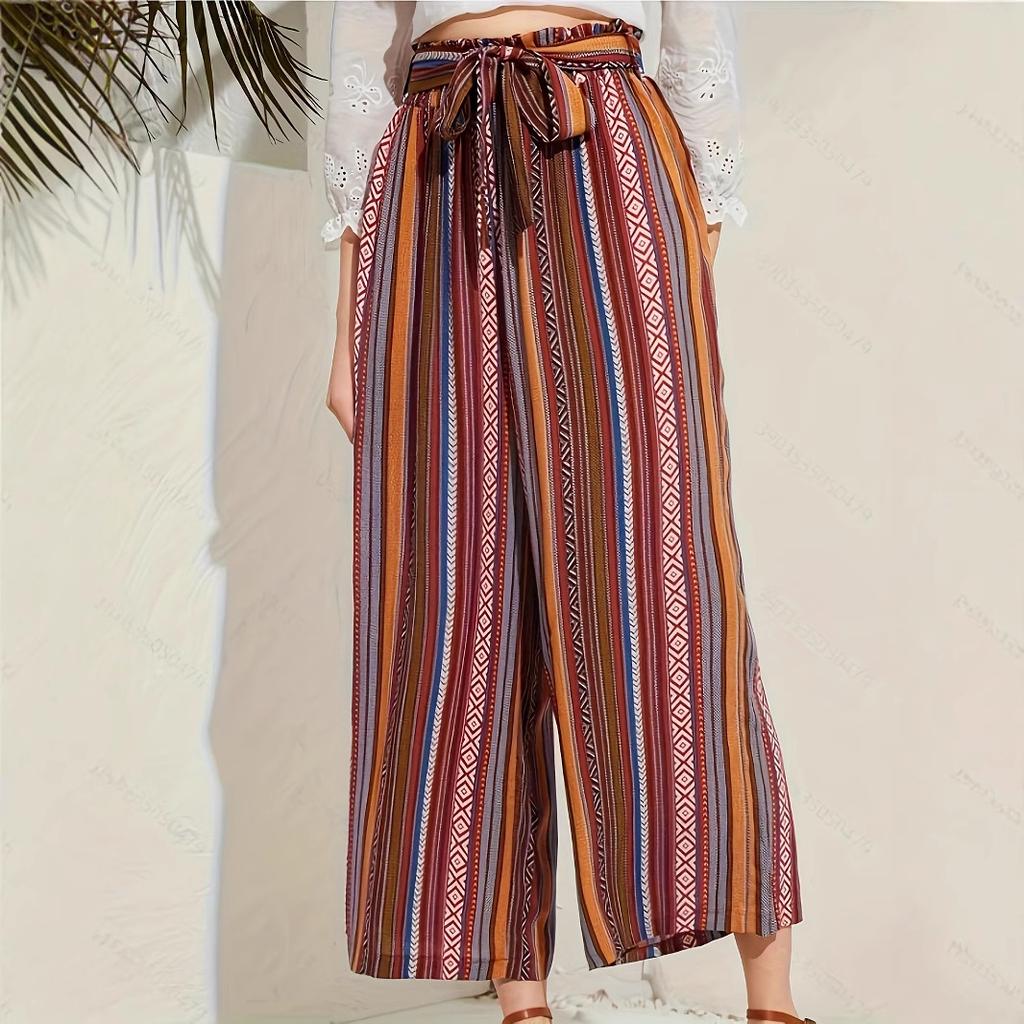 Women's ethnic style casual striped wide-leg pants