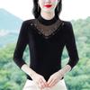 Neuer Frühling Rundhals Stil Vielseitige Perle Einfarbig Langärmlig Mesh Basishemd für Damen