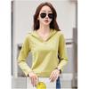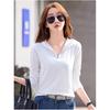 Damen Frühling Einfarbig V Langarm Slim Top Einfarbig Schlicht Bequemes T-Shirt