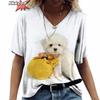 3D Print Pet Dog Summer Fashion 2025 Hot Sale Ladies T Shirt Short Sleeve Tops V Neck Streetwear Harajuku Casual Pullover