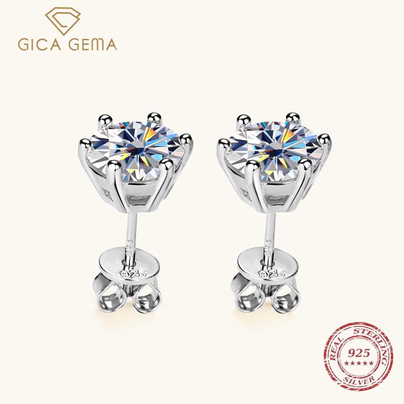 Gica Gema Premium Sense Klassische sechskrallige Moissanit-Ohrringe Sterlingsilber-Ohrringe Alltags-Pendler-Accessoires