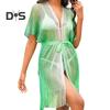 Damen-Strandkleid, ausgehöhltes Netz, Schnürriemen, Strandmode mit Quaste, Farbverlauf, Überzug, langärmelig, Sonnenschutz, Damen-Bikini-Badeanzug