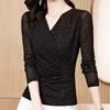 Netz-Basisshirt für Damen Langärmlige Sommerbekleidung, V-Ausschnitt Taillenbetontes Vielseitiges T-Shirt, Slim Fit, Modisches Oberteil