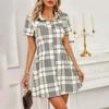 Damen Sommerkleid mit Aufdruck und kurzen Ärmeln, Taillenform, Thousand Bird Check
