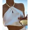 Damen Sommer Hängender Hals Neckholder Rückenfreies Metallkette Kurzes Top
