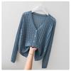 V-Ausschnitt-Strickjacke aus Eisseide für Damen, neues, lockeres Sonnenschutzhemd in Übergröße, dünn geschnittenes, hohles Schaloberteil