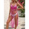 Damen Pailletten Spleißen Reine Hand Haken Slip Kleid Strand Urlaub Lange Fransen Bikini Smock