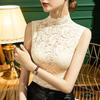 Damenbluse mit hohem Kragen im französischen Stil, perspektivisches sexy Top für Frühling und Sommer, dicker ärmelloser Pullover für den Winter
