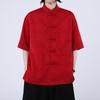 2025 Herrenhemd Mandarin-Kragen Kurzarmhemden Sommer Übergröße Herren Schwarz Weiß Rot Chinesisches Neujahr Retro Hanfu Printhemden