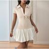 YYFS Damenmode Sommer Frühling Einfarbiger Druck Kurzarm POLO-Ausschnitt Hohe Taille Freizeitkleider