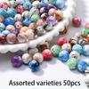 50/100/200 Stück mehrfarbige runde lose Perlen, zur Herstellung von Armbändern und Halsketten Schmuck, zufällige Farbe (Tintenmuster)