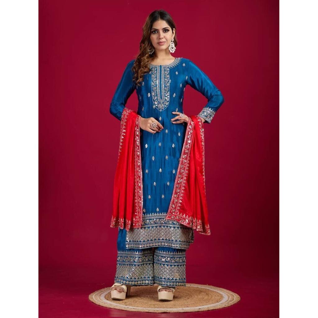 Damen Bollywood Ready To Wear Palazzo Anzug Indischer Pakistanischer Salwar Kameez Kleid VF-1843