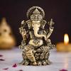 Chaturbhuj-Statue von Lord Ganesha aus Kunstharzbronze, sitzend auf einer Lotusblume – Ganesha-Statue für die Inneneinrichtung im Büro, im Armaturenbrett des Autos – Ganesha-Statue für den Puja-Raum