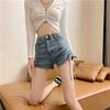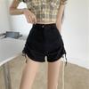 Klassische und minimalistische Mode, vielseitige Krawatte, hohe Taille, elastisch, eng, dünn, sexy, Kordelzug, weites Bein, Jeans-Shorts, Individualität und Trendy