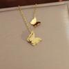 Nubuck Butterfly Titanium Steel Necklace Women'S Stainless Steel Nubuck Double Butterfly Necklace
