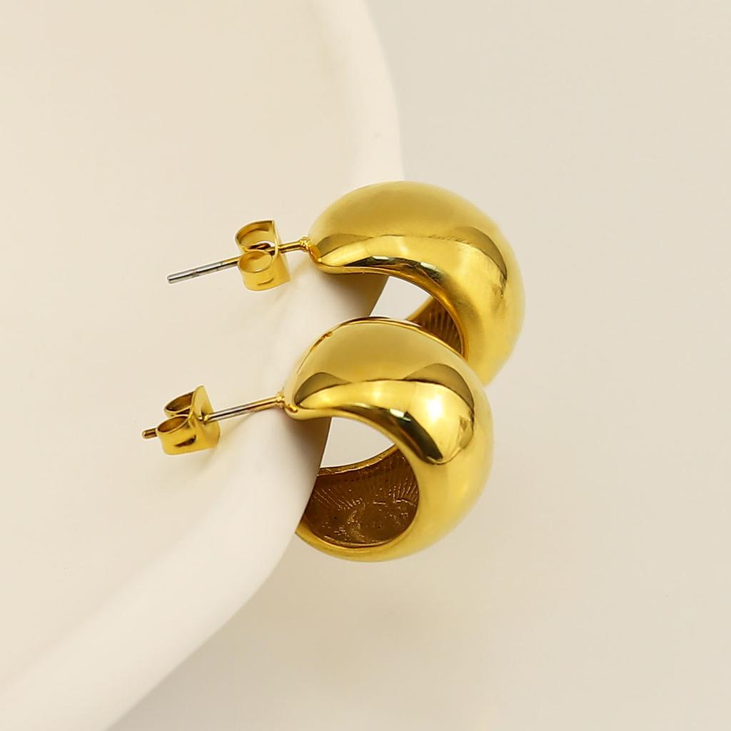Mode Retro Kugelförmige Edelstahl Ohrringe C-Typ Hohl Titanstahl Wind Ohrringe