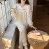 Herbst Zweiteiliges Damen V-Ausschnitt Süße Hauskleidung Spitze Langarm Pyjamahose Set Lässig Damen Rosa Schleife Niedliches Pyjama-Set