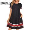 Sommer Casual Kleid Frauen Mode O-Ausschnitt lose Retro Blumen gedruckt Kleid elegante Urlaub Kurzarm A-Linie Kleider weiblich