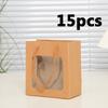 15 Stück Kraftpapier-Geschenktüten mit Sichtfenster und robusten Polyestergriffen, rechteckig, in kräftiger Holzoptik, tragbare Boutique-Tüten für Blumensträuße und Gastgeschenke