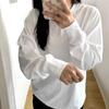 Damen-T-Shirt aus reiner weißer Baumwolle mit langen Ärmeln und Rundhalsausschnitt, lockerer Passform für Herbst und Winter