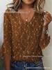 Strickoberteil im europäischen und amerikanischen Stil mit V-Ausschnitt, 3D-Pflanzenmuster und Trompetenärmeln