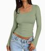 Einfarbiges Slim Fit Langarm-T-Shirt mit quadratischem Kragen für Damen - Europäischer und Amerikanischer Stil
