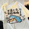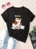 Kawaii Katze Hai Frauen Drucken Lustiges T-shirt Mädchen Tier Y2K Mode 90S Print Tops T Gril Schwarz Weiß Kleidung