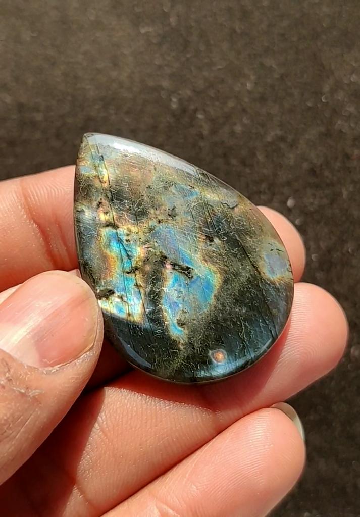 Blue Fire Big Size Natural Labradorite Cabochon Gemstone, 64.90 Carat, 44x31x5 MM Size Labradorite.