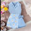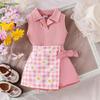Mädchen Mode Anzug Sommer Kinder Revers Ärmelloses Top + Plaid Patchwork Hosen Rock Anzug