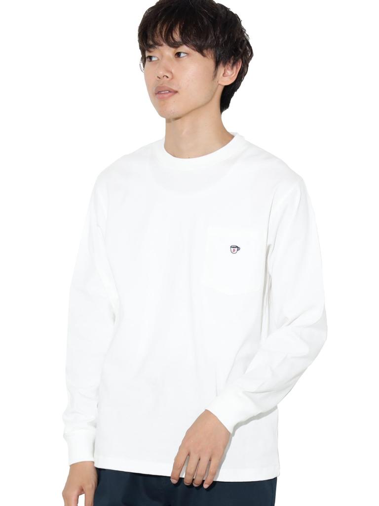 Rundhalsausschnitt im Cut-and-Sew-Stil aus Basic-Jersey. Ein Stück mit einem auf die Brusttasche gestickten Kaffeemotiv, das ihm einen verspielten Touch verleiht und sich vielseitig kombinieren lässt.
