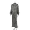 Pyjamas für Damen 2-teilige Sets Druck Langarm Umlegekragen Nachtwäsche Weibliche Freizeit Hosenanzüge Herbst