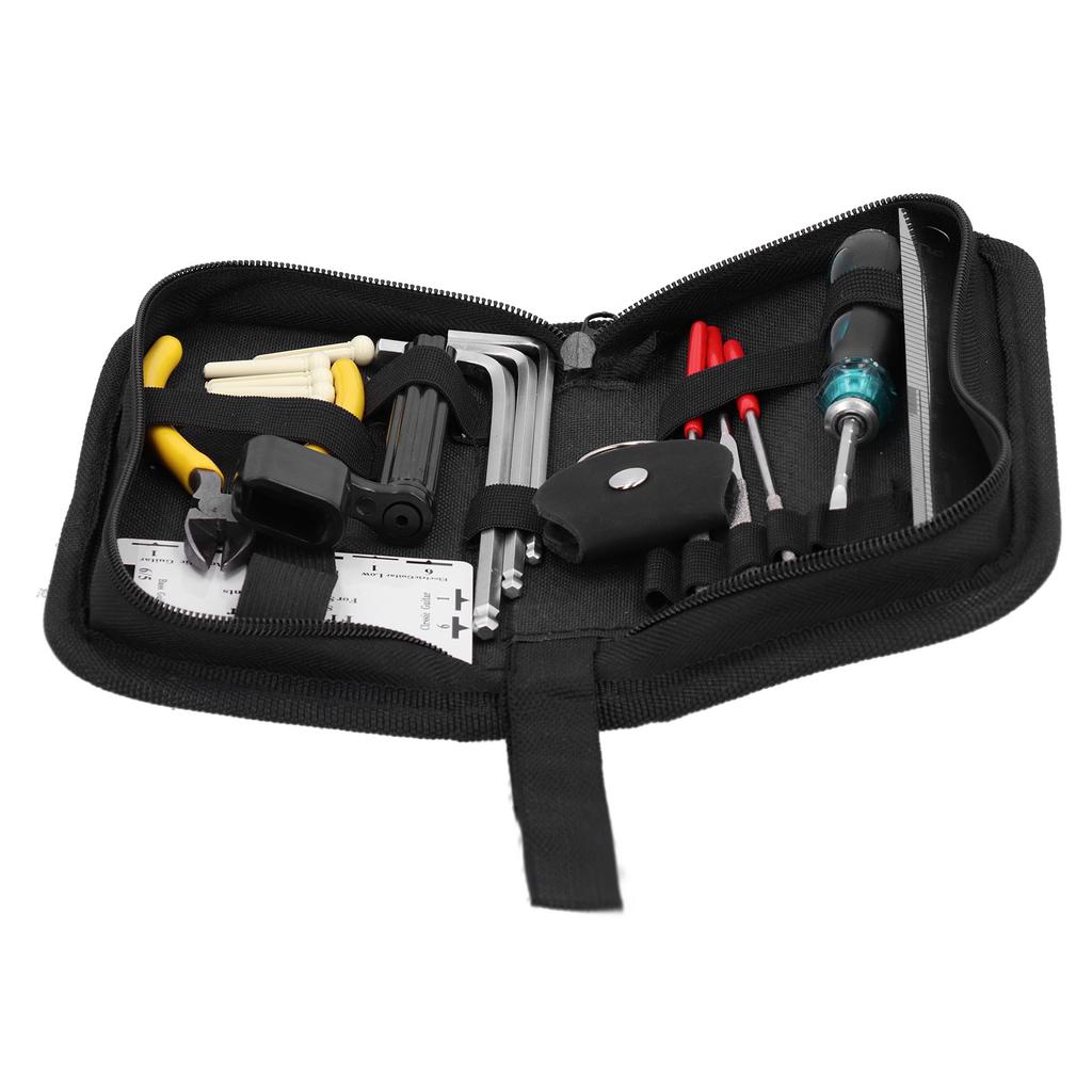 2. Das Gitarrenreparaturset wird verwendet, um die Leistung des Instruments zu erhalten und in gutem Zustand zu halten.. Es kann verwendet werden, um die Saiten zu wechseln, die Tonhöhe einzustellen, den Saitenabstand zu messen und die Saitenhöhe zu überprüfen.