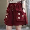 Damen Cordshorts Sommer Retro Locker Chinesischer Stil Tasche Gehäkelt Lässige Weitbeinshorts
