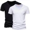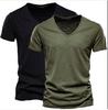 2-teiliges Sommer Herren Uni Slub Baumwolle V-Ausschnitt Kurzarm T-Shirt Reine Baumwolle Herrenbekleidung Vintage Freizeitbekleidung Minimalistische Mode Atmungsaktives Hemd