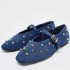 Krazing Pot Velvet Shoes Fashion Spring Size 42 41 Flat with Women Luxury Shoes Round Toe Rivets-studded Shallow Flats