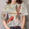 Sommer Rundhals 3D Libellenmuster Bedrucktes Oberteil Modische Lässige Kurzarm Damen T-Shirts