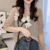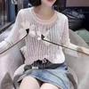 Sommer Dreidimensionale Blumen Damen Strickpullover Damen Aushöhlen Mesh Dünner Pullover Durchsichtiger Look Langarm Locker Tops Sonnenschutzhemd