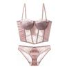 Französisches Satin-Spitzenstich-Unterwäscheset: Weicher und sexy geraffter BH für Damen