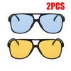 2PCS Oversized Rectangle Sunglasses Women Fashion Double Bridge Glasses Male Fashion Driving Sunglasses