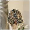 Umhängetasche Kordelzug Canvas Damentasche Blumenstickerei Ethno-Stil Kleine Tasche Crossbody Bucket Bag