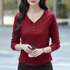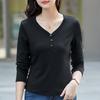 Herbst Damen V-Ausschnitt Einfarbig Mode Vielseitig Langarm T-Shirt
