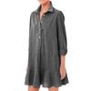 Frühling Sommer Damen Langarm Saum Rüschen Kleider
