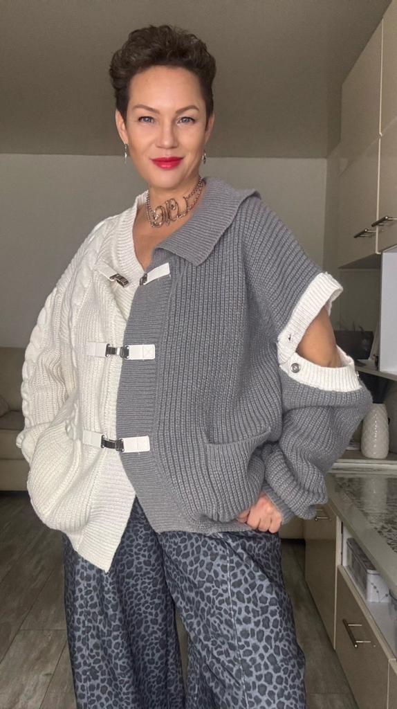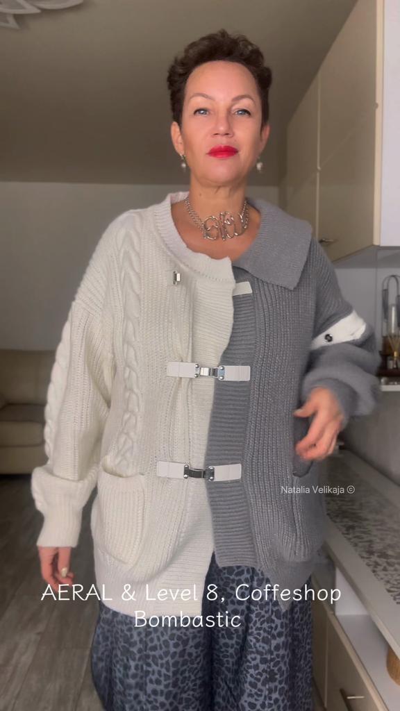 Herren-Cardigan mit unregelmäßigen Kontrastnähten – trendig, lockere Passform, Metallakzente für Herbst/Winter.