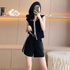 Koreanische Ausgabe, lockere Größe, modisches Kurzarm-T-Shirt und Shorts mit weitem Bein und Schnürung für den lässigen Sommer, zweiteiliges Set für Damen