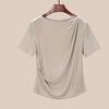 Damen Sommer Neue Mode Einfarbig A-Wort Schulter Zeigt Dünn All Match Kurzarm Top