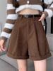 Braune Cord-Shorts mit hoher Taille für Damen – Schlankmachende A-Linie mit weitem Bein, perfekt für Herbst/Winter 2023