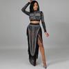 Dieses elegante zweiteilige Set verfügt über einen langen Rock mit einem gewagten Schlitz und einem soliden Muster, das Raffinesse und Reiz ausstrahlt. Das aus luxuriösem Kunstseidenmaterial gefertigte Outfit hat eine seidige, glatte Textur, die wunderschön fällt. Die Details aus Milchseidenpelz verleihen einen Hauch von Opulenz und sorgen dafür, dass Sie ein eindrucksvolles Statement abgeben.. Dieses Set ist perfekt für Abende, an denen Sie sich sowohl elegant als auch mutig fühlen möchten, und unterstreicht ein einzigartiges Zusammenspiel europäischer und amerikanischer Modeeinflüsse.