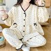 2024 Warmer Umstandspyjama aus Air-Baumwolle mit Zwischenschicht – Strickjacke mit Rundhalsausschnitt und Stillzugang für Herbst/Winter.