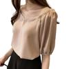 Meeresgrünes Wickeloberteil mit Puffärmeln und Selbstmuster